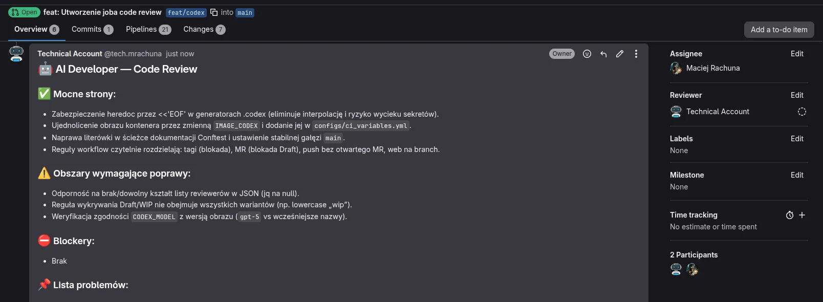AI Review - Codex w gitlab-ci